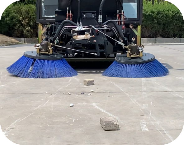 采用全液压转向系统,结构简单,转向平稳。在低速行驶转向频繁的清扫作业时操作轻便。