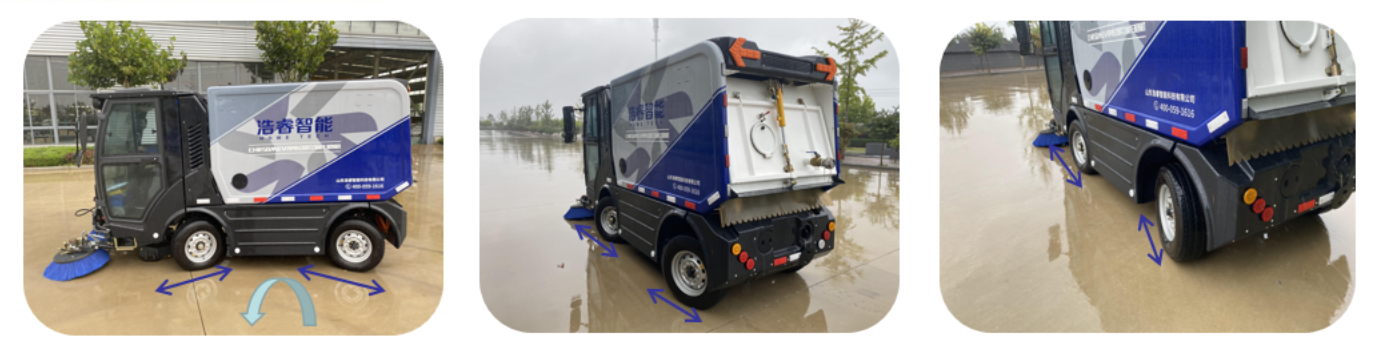 为了应对背街小巷复杂狭窄的工况,我们研发了多种转弯系统。